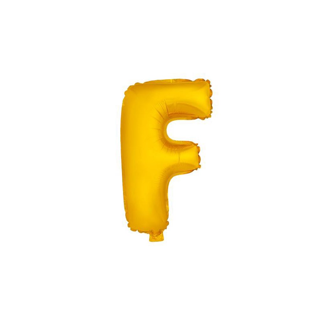 Fóliový nafukovací balónek ve tvaru písmenka "F". Pomocí těchto balónků můžete vytvořit jedinečnou dekoraci každé oslavy, svatby či večírku. Stačí vybrat potřebný počet písmen a sestavit nápis. Nabízíme 23 písmen abecedy. Velikost cca 30 cm. Barva - matně zlatá.