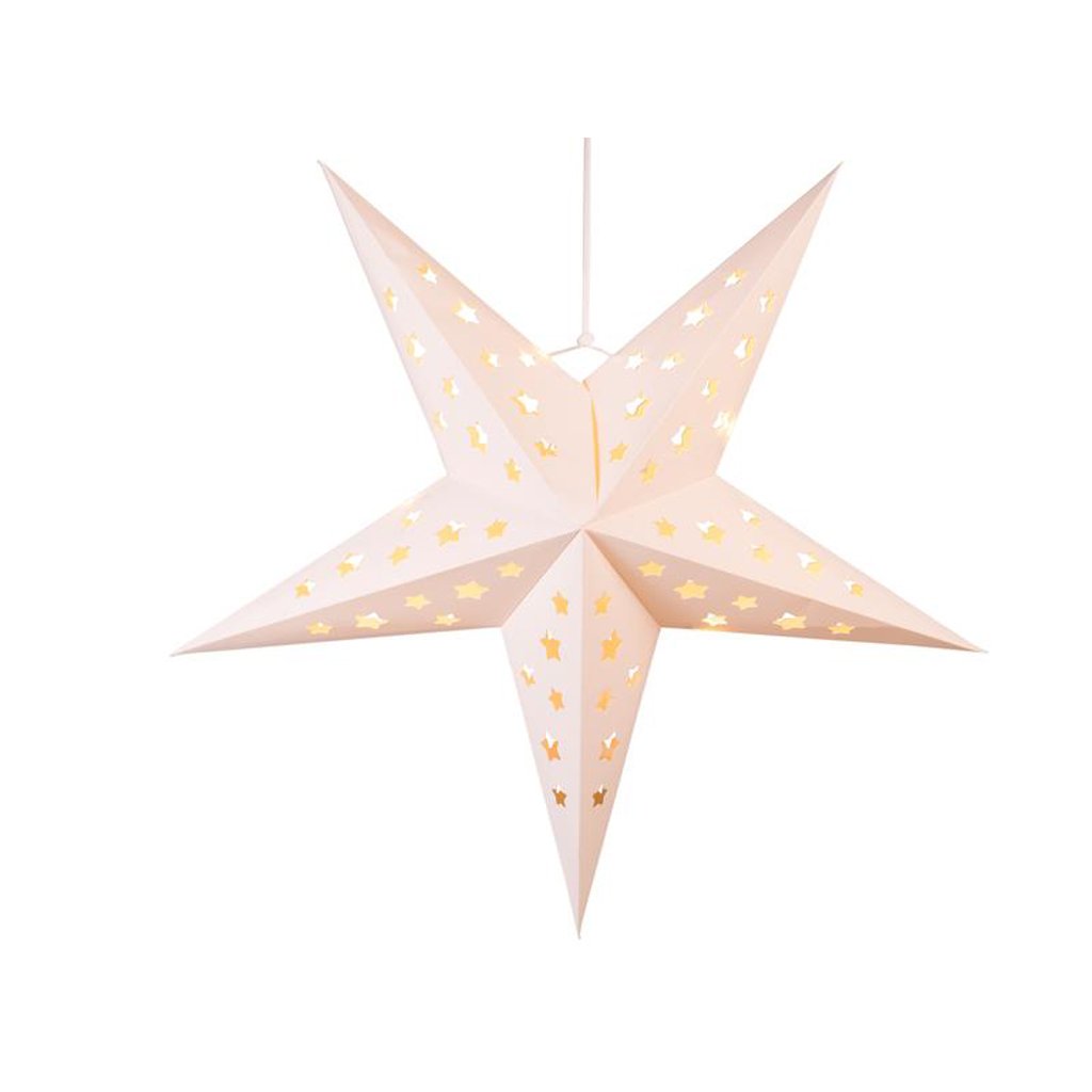Papírová vánoční hvězda je velice působivá, závěsná 3D dekorace do prostoru nebo do okna. 4 LED, průměr 60 cm, barevné provedení - bílá, hvězdu snadno složíte i rozložíte. Napájení 2 x baterie AA (nejsou součástí balení)
