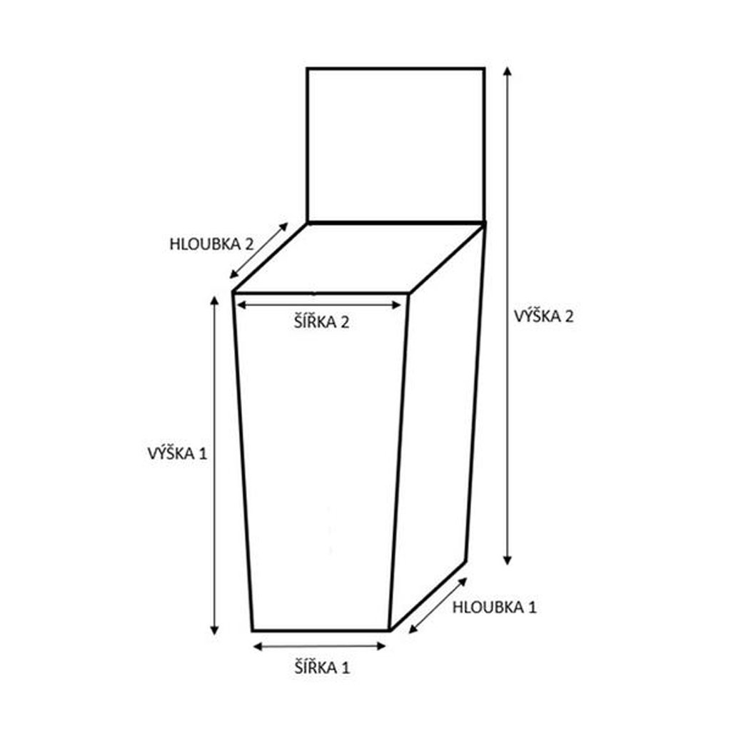 Šířka ? 17 cm. Výška 1 ? 41 cm. Výška 2 (s otevřeným víkem) ? 62 cm. Hloubka 1 ? 30 cm. Hloubka 2 - 27 cm. Objem ? 8 litrů