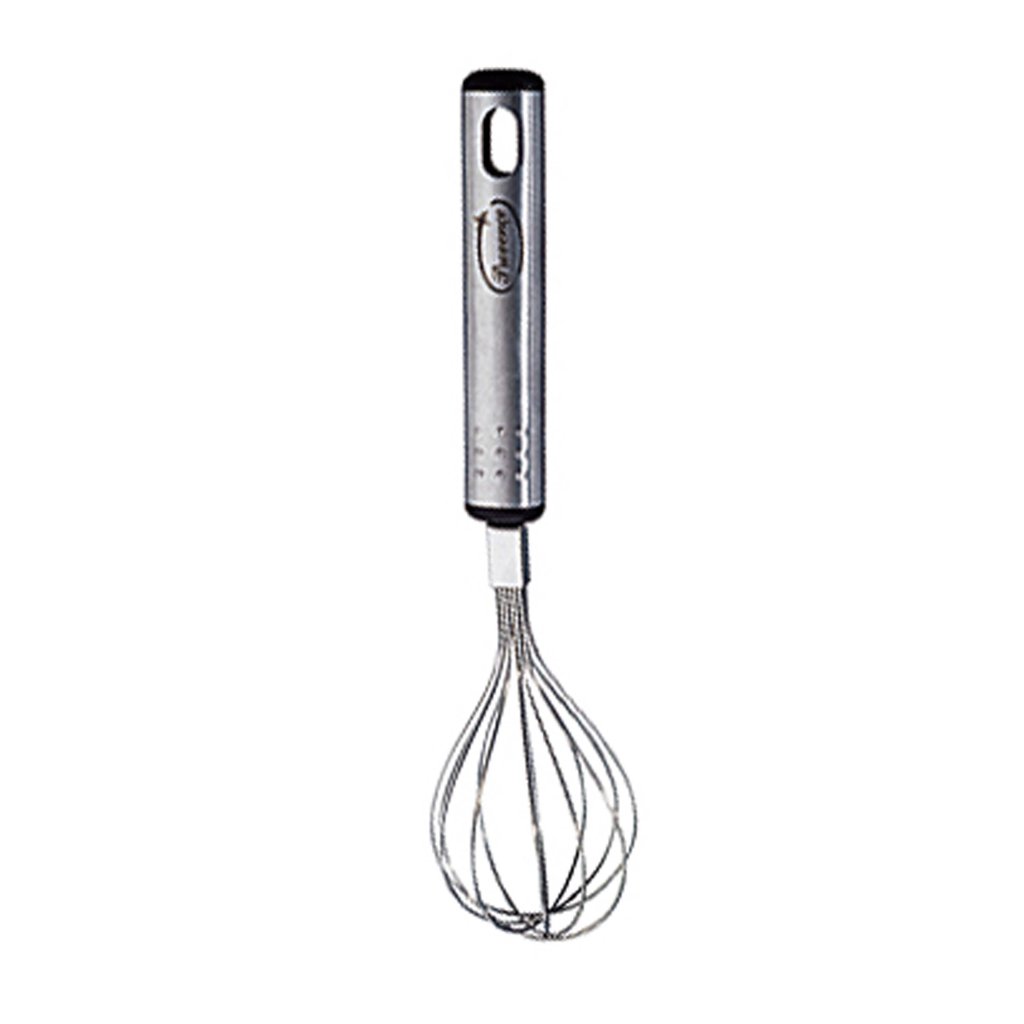 Metla šlehací malá, 27, 5 cm, materiál matný nerez 18/8, rukojeť s otvorem pro zavěšení, snadno se udržuje, vhodná do myčky na nádobí. Je vhodná ke šlehání pokrmů při vaření a pečení. Rozměry - 27, 5 x 5,4 cm.