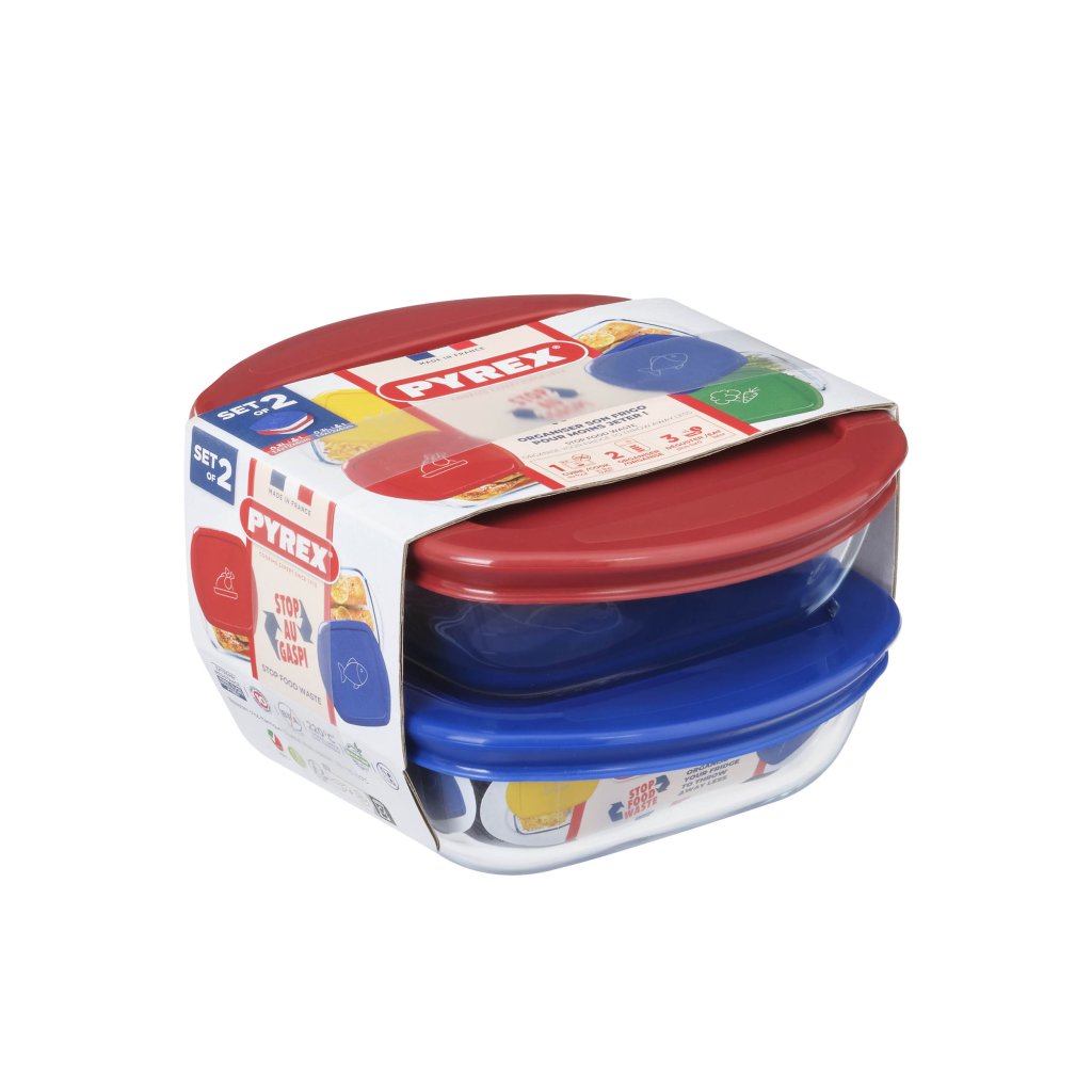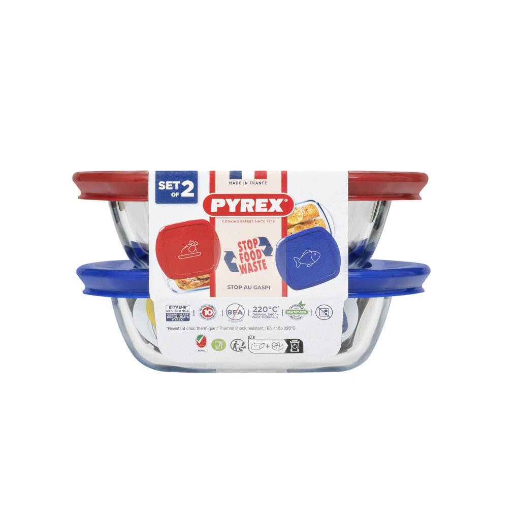 SADA ČTVERCOVÝCH DÓZ PYREX 2KS, 0,3L, SKLO