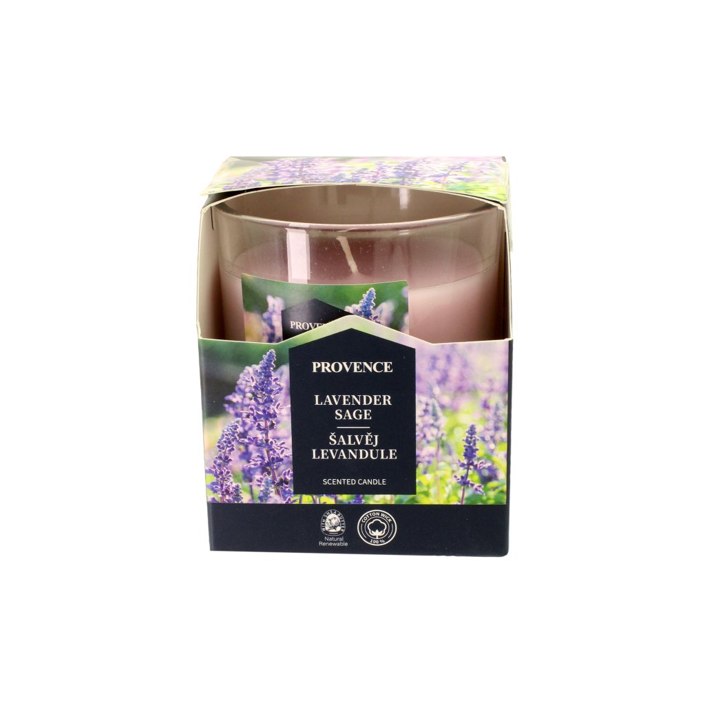 SVÍČKA VE SKLE ŠALVĚJ LEVANDULE 7X8CM