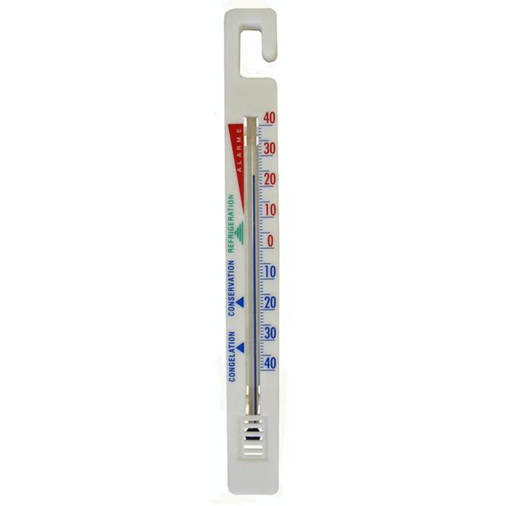 Teploměr do chladničky je základní pomůcka ke kontrole teploty v lednici. Teploměr je mechanický a má stupnici od - 40 do + 40 °C. Teploměr je vyroben umělé hmoty. Teploměr lze připevnit na háček. Rozměry - 15,4 x 1,7 x 0,5 cm.Doplňkové parametry